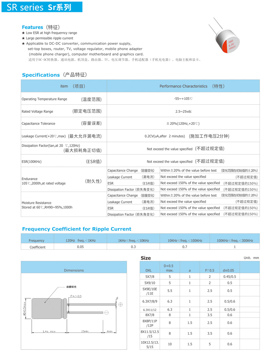 ● Chip type operating over wide temperature range -40 to +105"C . (貼片型,寬溫域)