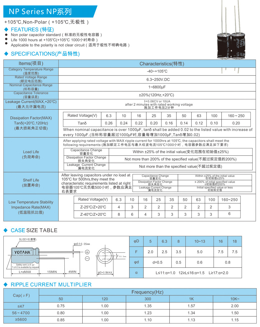 ● Life 1000 hours at +105°C(+105"C 1000小時(shí)壽命)